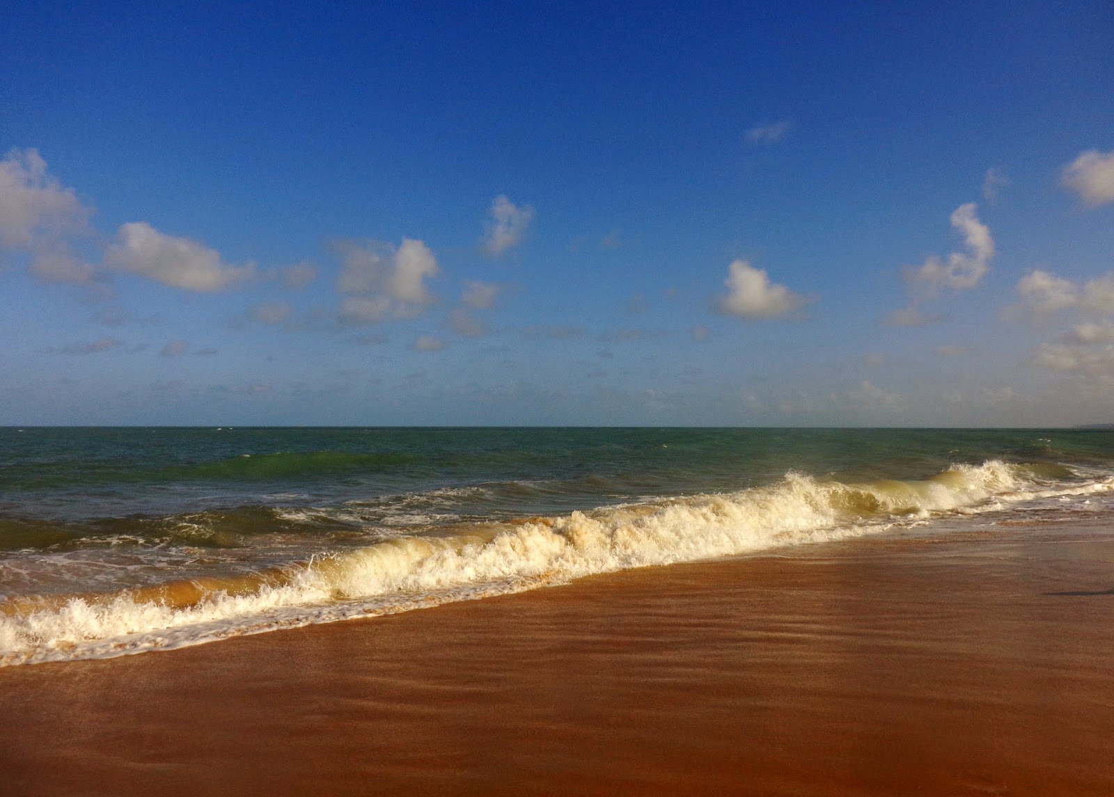 Suas ondas desordenadas, azuis, esverdeadas, crista branca.